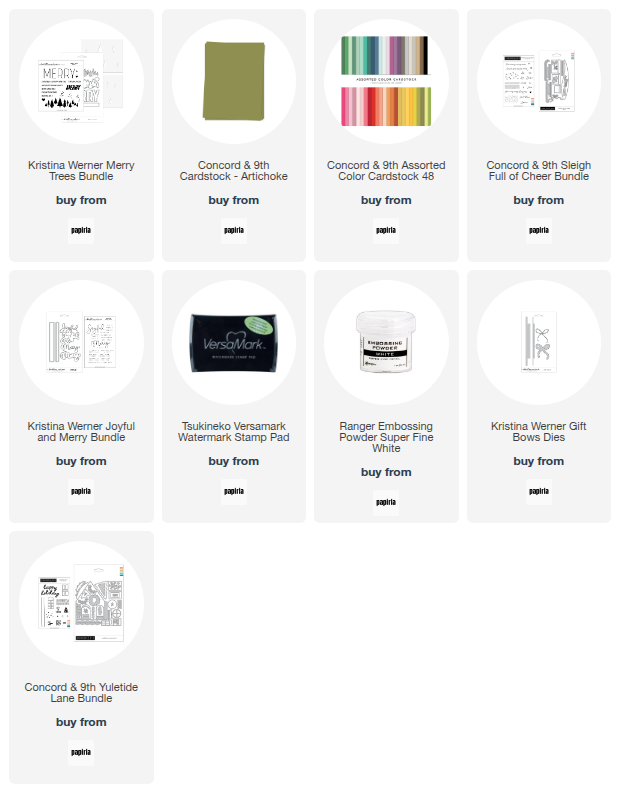 Hei og hopp midt i uka! Det er ingen hemmelighet at jeg er glad i enkle kort, og Kristina Werner sine produkter er midt i blinken for stilen. I dag har jeg et enkelt, grafisk kort å dele, med hovedfokus på Merry Trees bundle som kom i fjor. Jeg har laget et par kort med dette settet tidligere, men dagens kort er helt annerledes enn de foregående, og nå har jeg sneket inn noen nye produkter også.