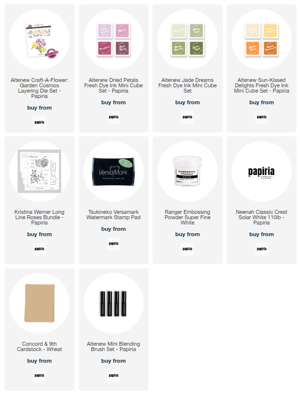 I dag har jeg brukt settet Garden Cosmos og inkblendet med tre av mine favoritt sett med blekk, Jade Dreams, Dried Petals og Sun Kissed Delights.