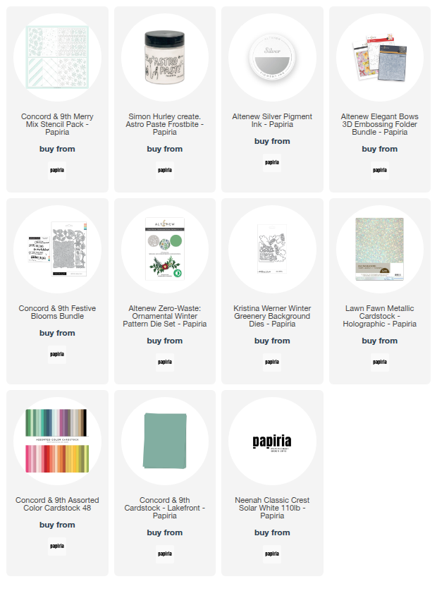 Jeg kjøpte Astro Paste Frostbite fra Simon Hurley med en plan om å mikse den med pigmentpulver eller blekk. Her valgte jeg å bruke Silver Pigment blekk fra Altenew som jeg blandet sammen med pasten. Det er veldig enkelt. Jeg smoosha blekket på glassplaten min, tok litt paste, blanda det sammen med en palettkniv og smurte utover stensilen. Jeg hadde tapet stensilen til en kartong i fargen Powder fra Concord & 9th. Denne kan du få i Assorted Color Cardstock-pakken.