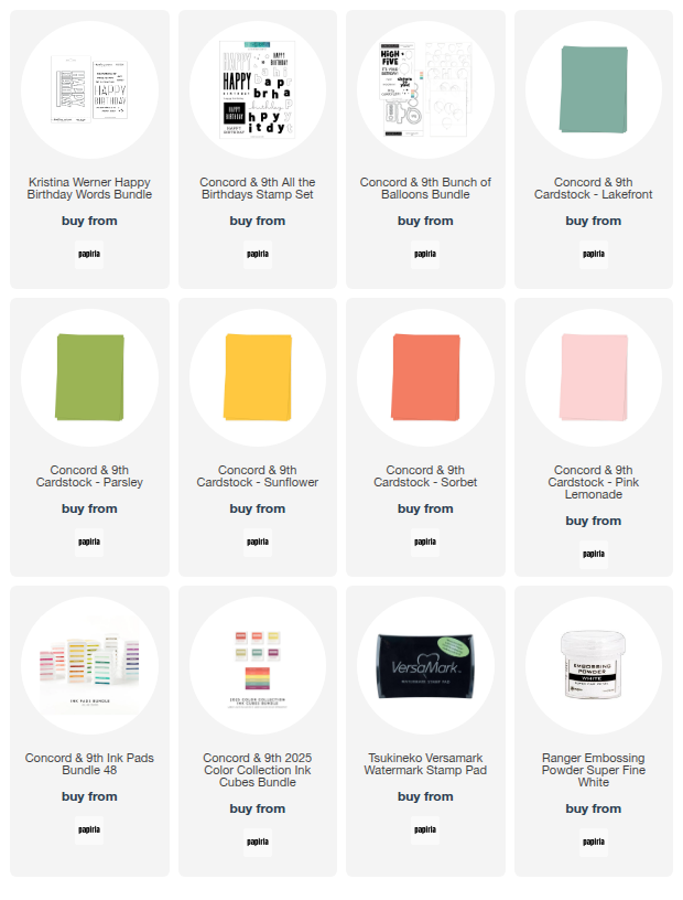 Jeg startet med å stemple, embosse og stanse ut bokstavene til å stave ordet happy med Happy birthday words bundle fra Kristina Werner på farget kartong fra Concord & 9th. Jeg stemplet og stanset ut hele ordet i hver farge og stablet dem oppå hverandre, det gir en litt kul effekt fra siden.