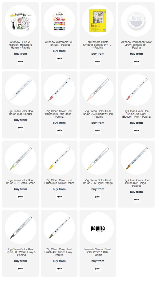 Jeg starter med å stemple med Altenew Permanent mist grey for å fargelegge med no line teknikk. Jeg stempler på Bristol papir siden dette papiret har riktig overflate for tusjene.